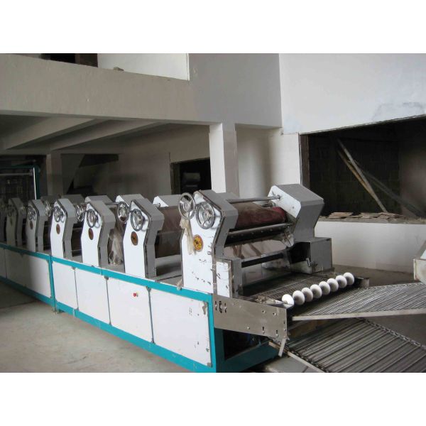 The fried instant noodle production line adopts frequency conversion speed regulator, electro-optical tracking system and programmable logic controller to realize synchronized coordination of the whole production line. The number of cutting is visible and the weight of one piece of fried instant noodle can be adjusted without having to shut down the machine. The equipment has an automatic frying temperature controlling function. The oval paddle double axis double speed flour mixing machine allows for a more uniform mixing of the powder and water because more water can be introduced.